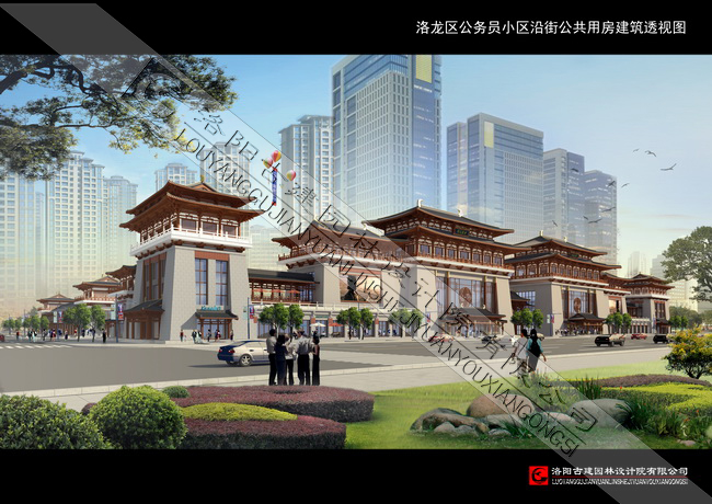 洛陽(yáng)市洛龍區(qū)公務(wù)員小區(qū)沿龍門大道建筑為仿唐風(fēng)墩臺(tái)式建筑群,南北長(zhǎng)110米,東西寬40多米,高四層局部五層。唐代建筑規(guī)模宏大,氣勢(shì)磅礴,形體俊美,莊重大方,整齊而不呆板,華美而不纖巧,舒展而不張揚(yáng),古樸卻富有活力,建筑藝術(shù)加工和結(jié)構(gòu)的完美統(tǒng)一,斗拱的結(jié)構(gòu)、柱子的形象、梁的加工等都達(dá)到了力與美的統(tǒng)一。而色調(diào)簡(jiǎn)潔明快,屋頂舒展平遠(yuǎn),門窗樸實(shí)無華,給人莊重,大方的印象。